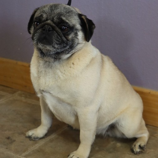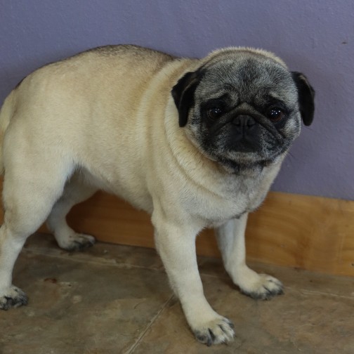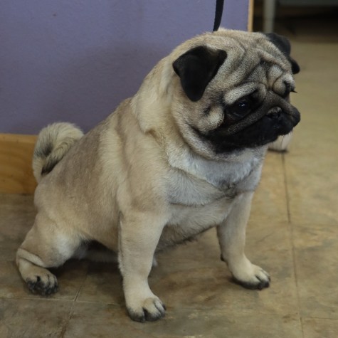 After almost 20 years of breeding, serious health issues force the dispersal of our kennel. We are placing each of our remaining pugs in retirement homes. These are adult dogs who have been cherished that we know to be healthy and sound. In order to adopt one of our retiring adults, you must be able to provide enough attention and stimulation. Each of these pugs has lived in our kennels in an 8 x 8 temperature controlled ‘stall’ with an 8 x 40 foot run. They are doggie door trained, but not yet housebroken. You must have the patience and consistency to house train a retiring dog. Due to the breed’s tendency toward respiratory problems, we cannot place our pugs with families who smoke indoors.