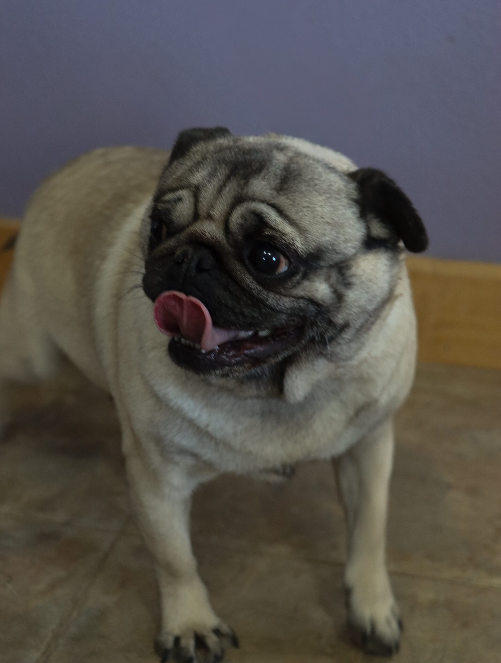 Ugly Mugs Honor born here at the farm on 1/11/2021. Truly beautiful girl. Honor is calm, sweet, and as dignified as a pug can be. She is trustworthy, quiet, and perfectly doggie door trained. A reliable pug companion! Good with children and with other pets.