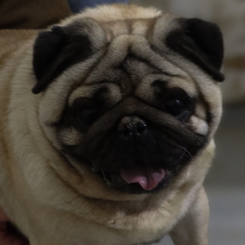 Ugly Mugs Charity born 8/13/2021 right here at the farm to Ugly Mugs Steve from Hoskins and Ugly Mugs Avery. This is a winning line! Avery is descended from our favorite female of all time. Charity has some dignity (for a pug) and is playful but respectful. She is a patient and reliable dog. She would love to have a family of her own!